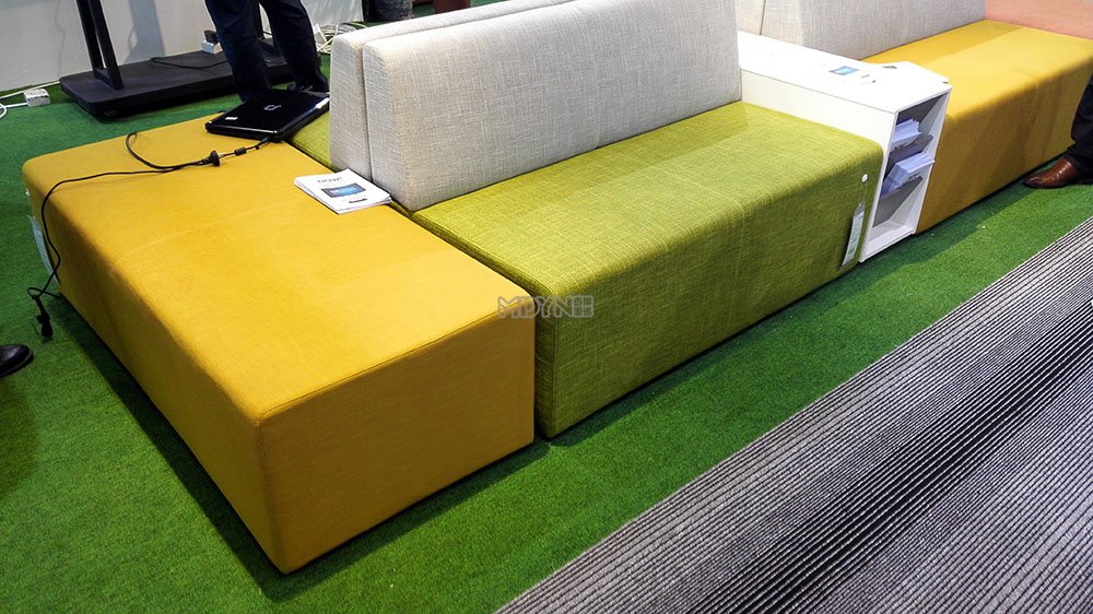 這次參加展會中,來自瑞典的Dads辦公椅開發商的展廳構造就像大型的建筑區一樣,整體看起來就像一個大型的辦公椅,其中一些辦公椅打造的特殊排列方式,也都極具色彩,真是五花八門,讓人應接不暇,服務人員也非常的熱情,為我們講解椅子的人體工學原理,椅子的材質是什么樣的,同時一場別開生面職員椅讓一部分好奇的觀眾止住腳步,這款椅子的后背以及色彩拼接用了很多顏色搭配,看見來就像彩虹一樣,十分好看,同時這款椅子的里面還添加了部分活性炭,對身體也是非常的環保舒適。